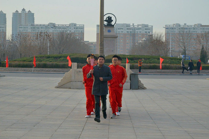 升旗仪式结束后,火炬传递活动正式开始。由张院长点燃了火种,魏书记传递第一棒火炬,经过各系学生代表火炬传递,薛院长传递最后一棒火炬。